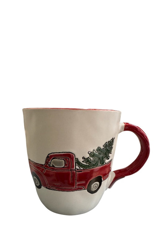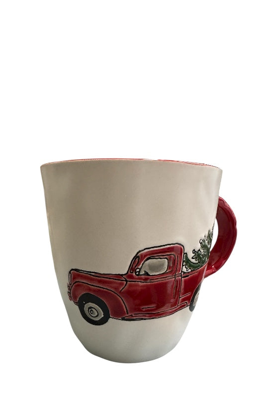 Hangulatos, nagyobb méretű, téli, karácsonyi mintás bögre.
