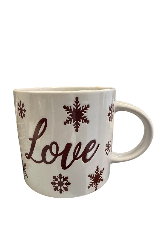 Hangulatos, nagyobb méretű, téli mintás bögre, Love felirattal, fehér-bordó