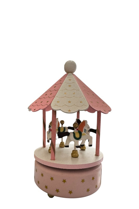 Csillag mintás, rózsaszín-fehér zenélő körhinta dísz / játék